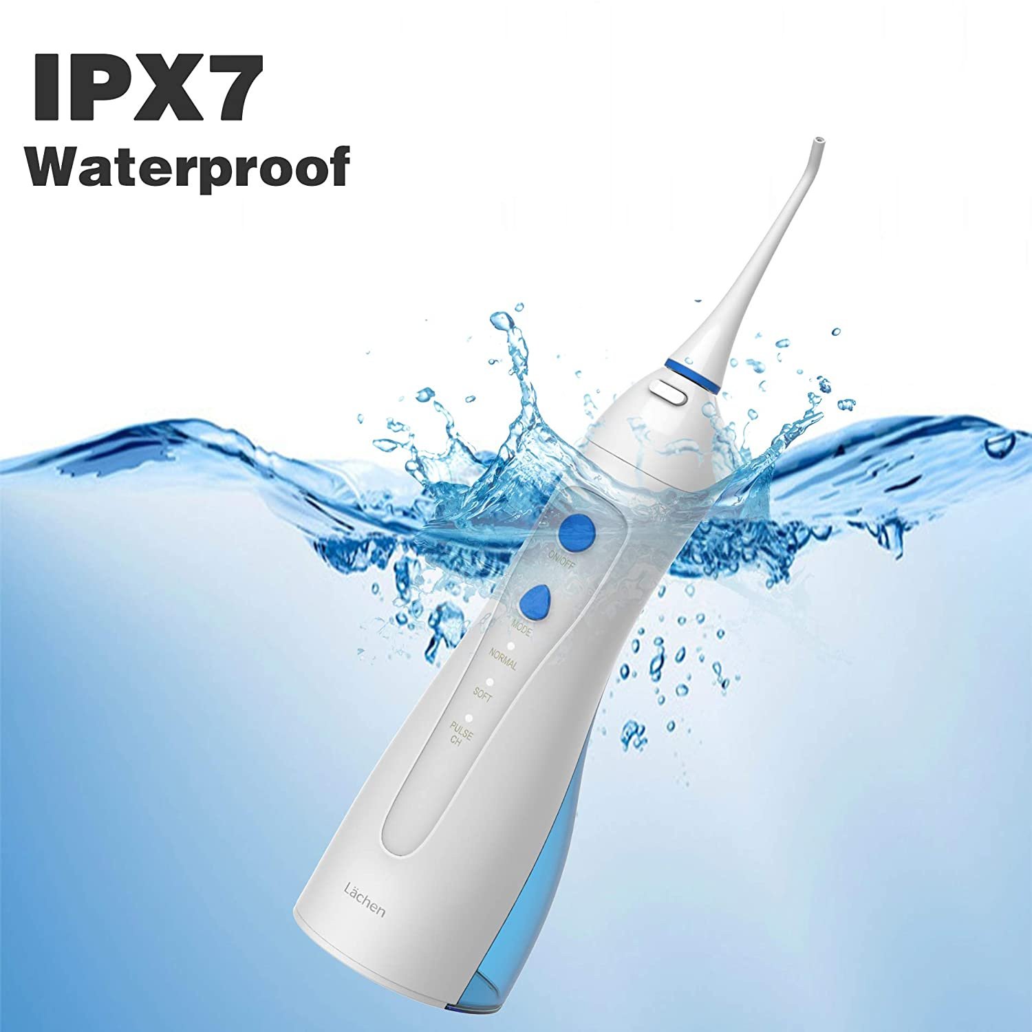 Wireless Charging Base & Long Battery Life - The cordless water flosser is equipped with a wireless charging base. Easily place it on the base to charge it and reduces the rate of product failure caused by water leakage from the plug inlet. The portable water floss charger can last 2 weeks per charge. 5 replacement Jet tips and best Choice for Home, Office, and TravelLatest Pulse Technique & Rotating Nozzle Design - Latest Water Flosser Pulse Technique, 50-90psi Pressure Range, 1800 Times/Min Pulse Rate, 360°rotating Long Nozzle,the cordless water floss can effectively deep clean 99.99% of the food residue in every corner, which is impossible to achieve with traditional brushing. Designed for periodontitis and braces.Three Mode & 2-Minute Timer - Normal, Gentle and Pulse modes to meet various oral care needs,choose the comfort mode that best suits your needs,recommended to use soft mode for the first time.Memory Function that helps to maintain the working mode that was used before. 2 minute automatic timer to avoid the water flossing device still working after cleaning is completed.Detachable Cleanable Water Tank - 220ML water tank for adequate and uninterrupted dental floss, no need to replenish water again and again. The upgraded detachable full-water tank allows you to thoroughly clean scales and plaque. The exclusive patented internal leak-proof drain design provides you with a safe, comfortable experience and extended product long lifespan.Double IPX7 Waterproof Protection - Both internal and external IPX7 waterproof design provides double protection. Intelligent design prevents leaks and allows the floss to be safely used in bathroom showers.
