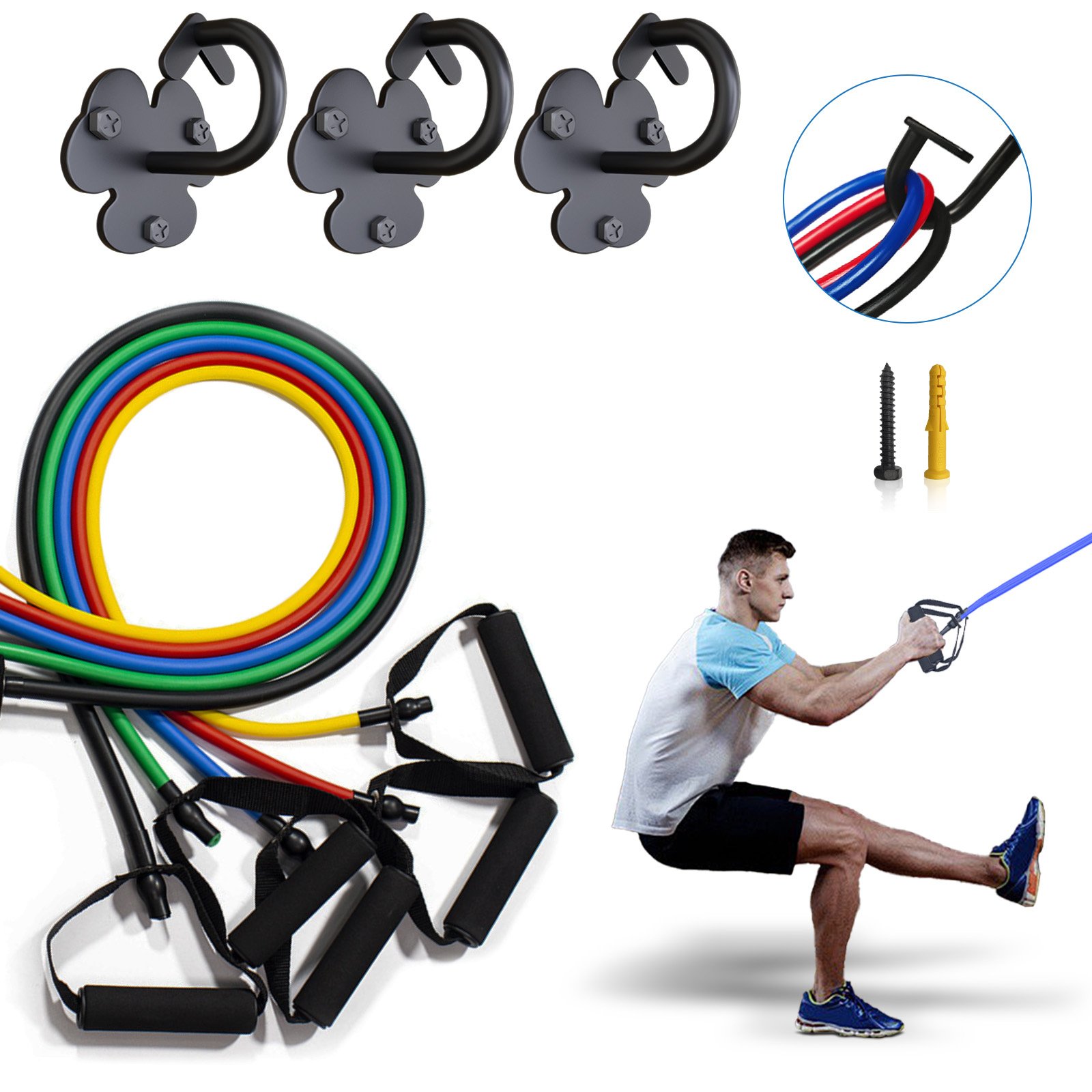 5.5. Versatility: Each set of products includes three wall anchors, five fitness belts with buffer handles, which can be installed at three different heights for fitness exercises in different parts of the body (such as arms, shoulders, back, chest), abdomen and legs from different angles.