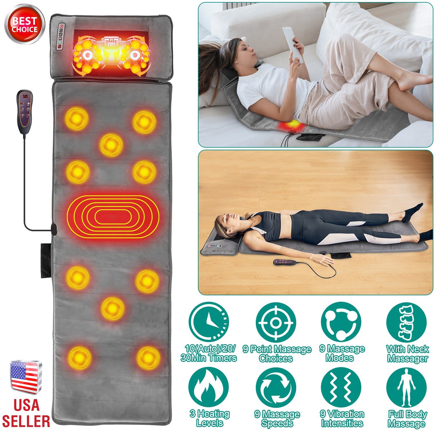 No need to spend extra money and time to go to massage shop. Our full-body massaging pad with neck massager made of skin-friendly plush bring you therapeutic massage experience. The mat with 10 massage points can massage your Back, Buttock, Waist, Thigh and Calf. Heating function helps to release muscle tension, stress, and fatigue. You can choose multiple vibration modes in different intensity and different speeds as you hit all the right spots. Neck massager is able to relieve your neck pain and neck stiffness after long day work. Besides, 3 smart timers can be chose to customize you massaging time. Great to enjoy massaging on the chair, bed, couch, etc. comfortably. Perfect gift to take care of the health of your grandparents, parents, husband, wife or friends in Mother’s day, Father’s day or birthday.