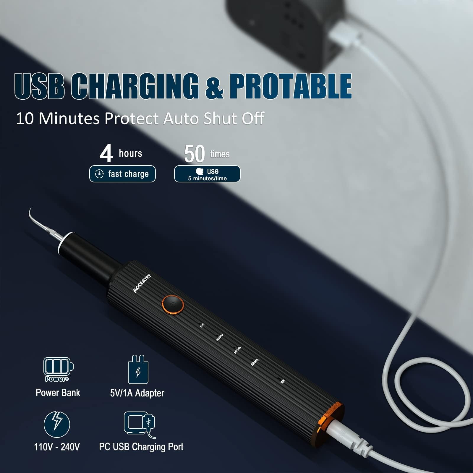 [ Safe for Gums ] The teeth cleaner only acts when the cleaning tip touches teeth or hard objects; and it stops vibrating when touches gums or soft tissues. 100% safe to your gums. Friendly to beginners.The handle does not vibrate; hands or arms won't get sore even for long time use. Automatic outage after use 10 minutes auto-protective and energy saving.