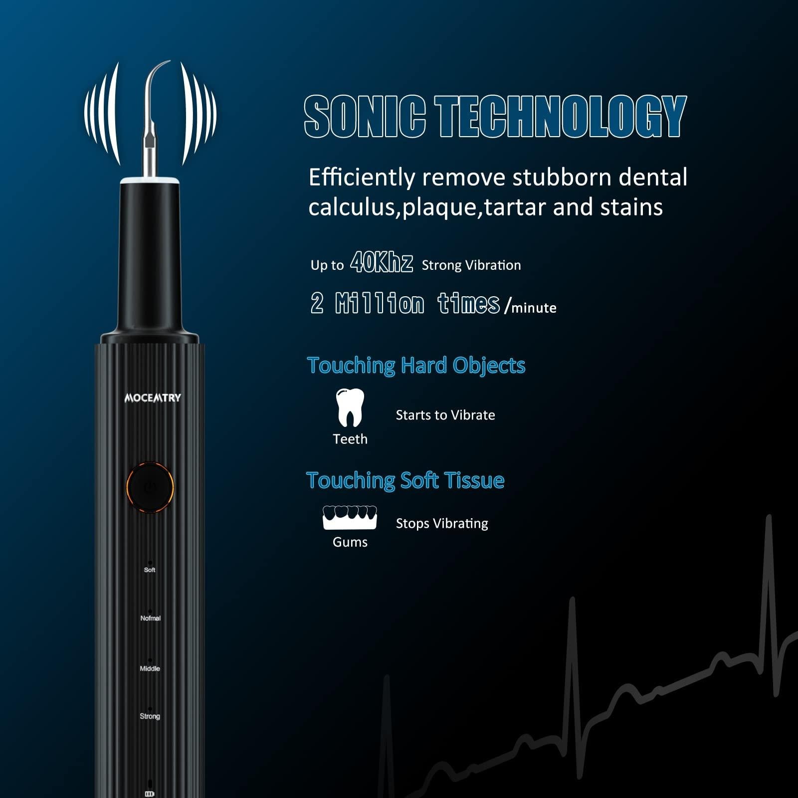 [ Sonic Technology Safe Oral Care ] This plaque remover for teeth adopts sonic technology; 4 million times per minute high-intensity frequency; effectively smash the stubborn calculus; remove smoke stains; coffee teeth stains.Preventing gum disease.Enjoy better home oral hygiene with this all in one plaque remover.