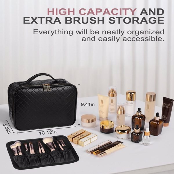 • [Large Capacity, Adjustable Partition Storage]Six EVA partitions can be adjusted according to the size of cosmetics, and can store various lotions, creams, eye shadow palettes, etc. It also comes with a makeup brush storage board that can store 10 makeup brushes. Partitioned storage and sponge pad protection to prevent cosmetics from being damaged by collisions.