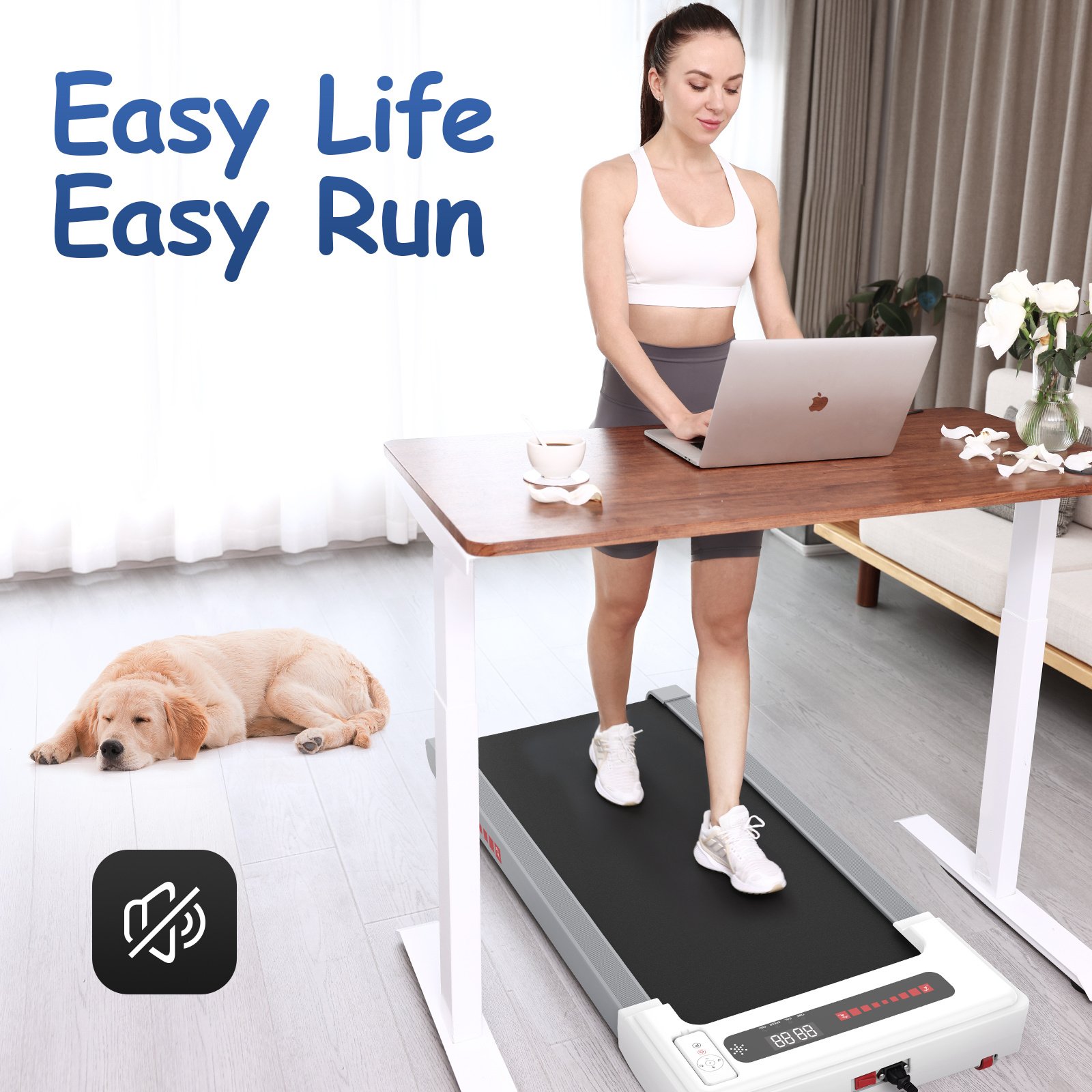 2.Installation-free & Super Quiet Motor : This walking pad treadmill arrives with fully assembled already which can be used directly after unboxing.Considering that most people are using the compact treadmill at home, we designed a high-powered quiet 2.5HP motor, a shock-absorbing running belt made of PVC, fiber and cotton yarn, and 4 shock-absorbing foot pads that help reduce noise and improve stability while running.