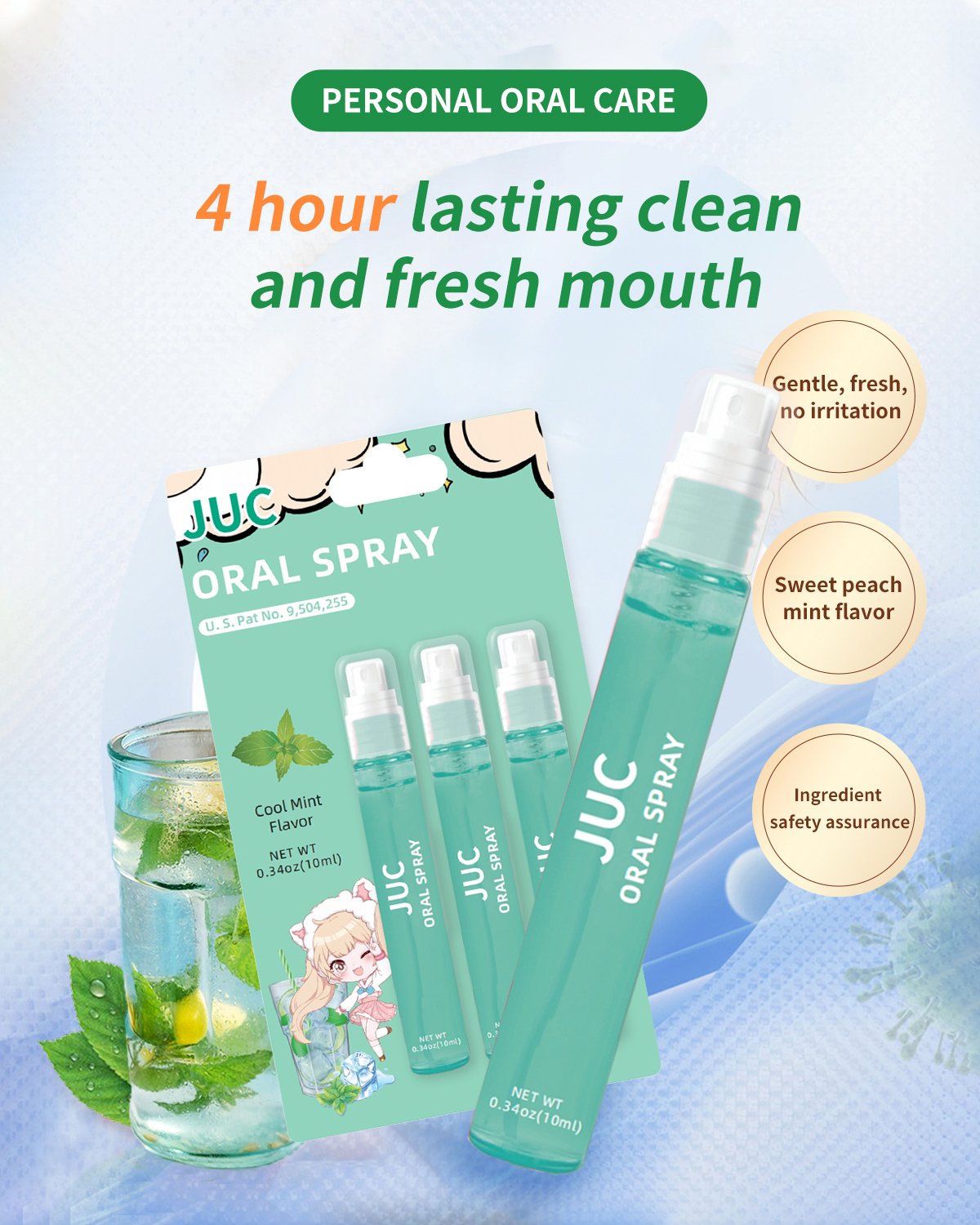 3.JUC breath spray contains no saccharin, no alcohol, no fat, authoritative certification, natural and safe to use, keep the mouth clean and fresh, always show the charm of confidence