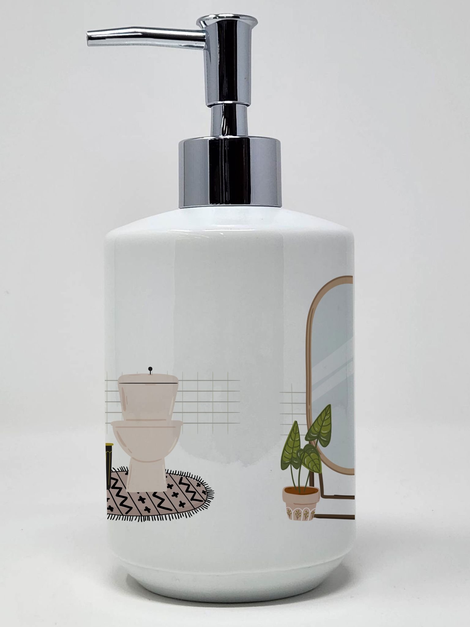 Ceramic Soap Dispenser featuring breed specific Pug artwork. This Ceramic Soap Dispenser is from Caroline's Treasures collection Rubadubdub Dogs in a Tub. Revitalize your kitchen or bathroom decor with the Decorative Ceramic Soap Dispenser from Caroline's Treasures. This refillable dispenser marries practicality and style, serving as a vibrant art piece in addition to its primary function. The dispenser's exterior boasts colorful artwork from one of Caroline's Treasures' artists, wrapping around the dispenser to add a touch of personality and color to your space. Measuring approximately 7 1/4 inches high and about 3 1/2 inches in diameter, it is the perfect size for any countertop. The dispenser features a sturdy pump nozzle, which screws easily into the top of the ceramic dispenser. With a simple press, you can conveniently dispense your preferred liquid soap, lotion, aromatherapy essential oil blend, shampoo, body wash, or even massage oils. The Decorative Ceramic Soap Dispenser is more than a functional item - it's a statement piece that adds a unique touch to your bathroom or kitchen decor, transforming everyday rituals into an artful experience. This Ceramic Soap Dispenser is from Caroline's Treasures Dogs category of products.
