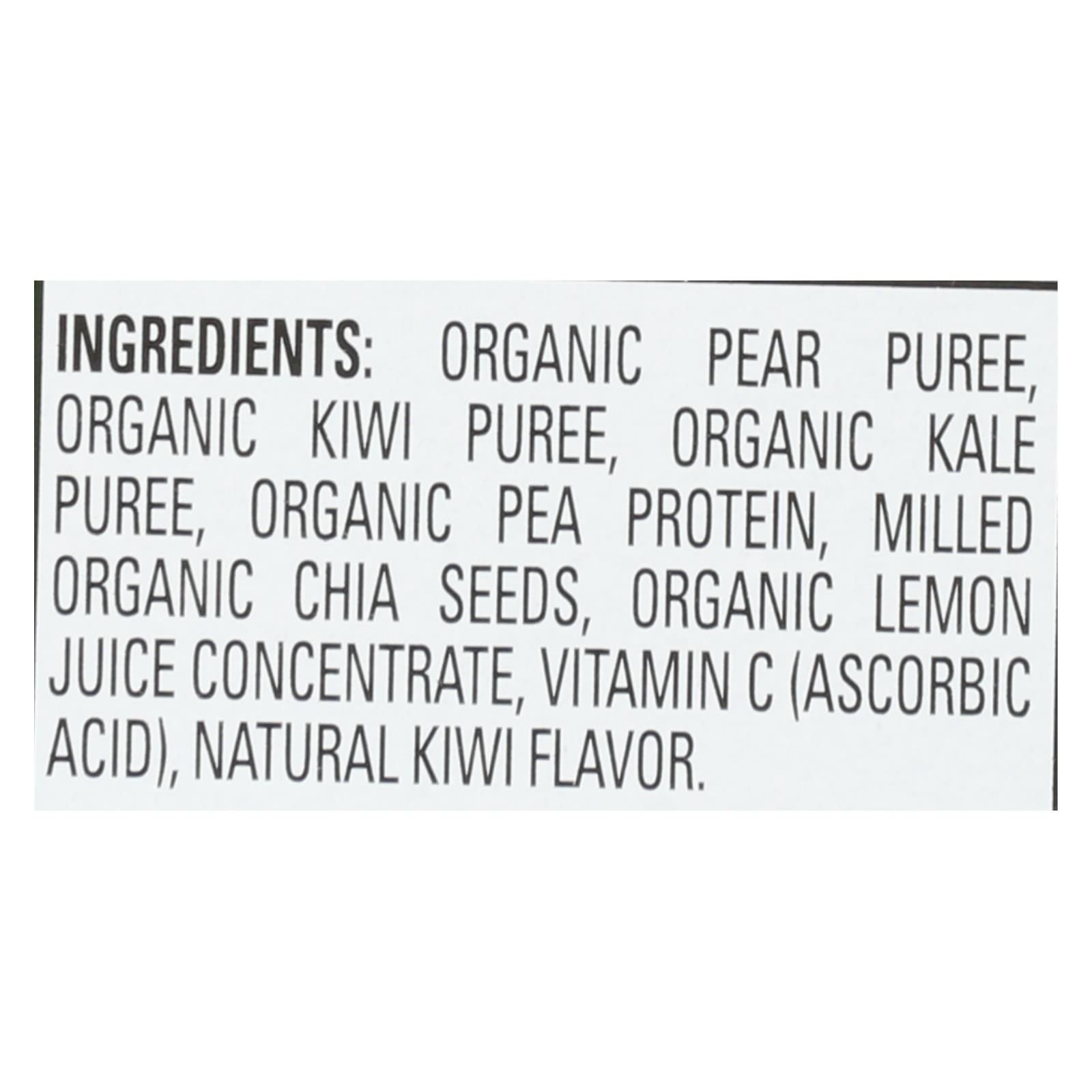 ingredients : organic pear puree;organic kiwi puree;organic kale puree;organic pea protein;milled organic chia seeds;organic lemon juice concentrate;vitamin c;ascorbic acid;natural kiwi flavor
