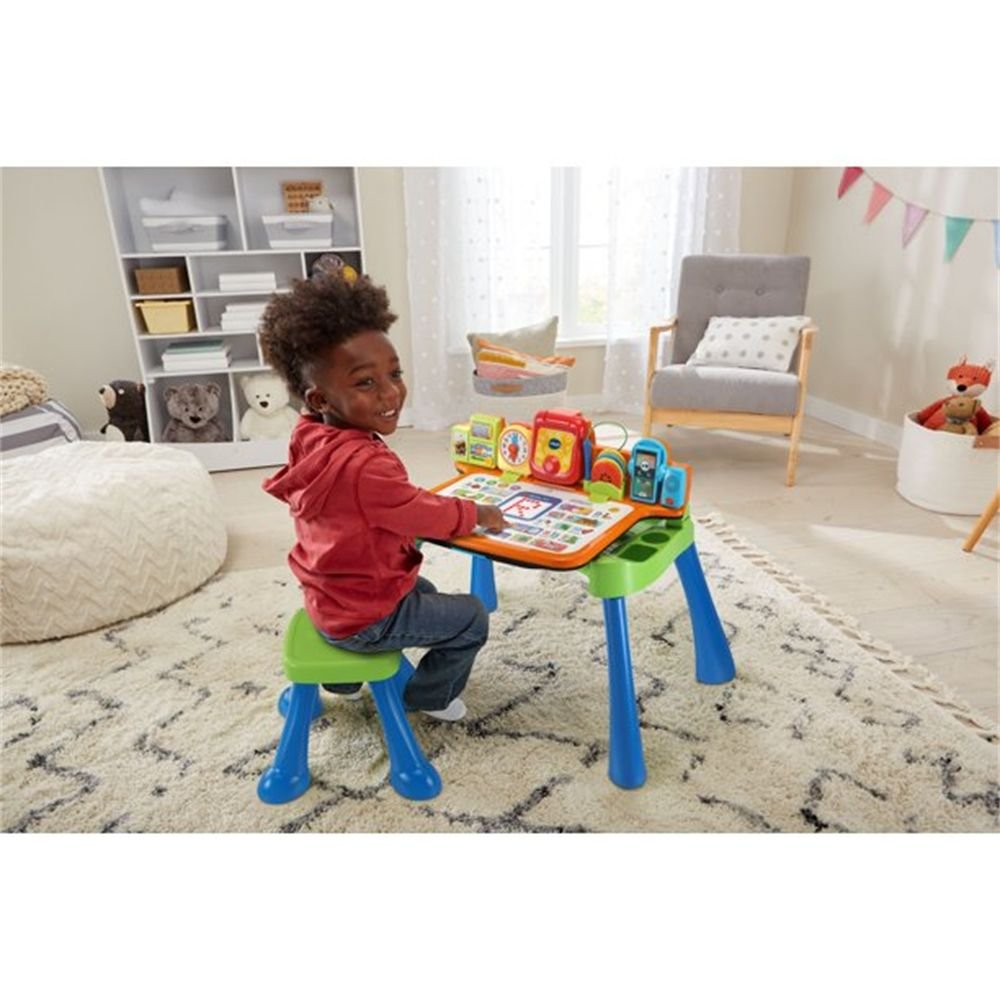 5-in-1 desk with stool with interactive desk top; projector; LED writing pad with stylus; chalkboard and art station